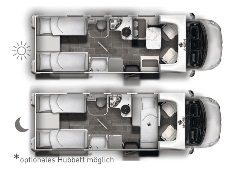 Zur Vermietung kommen nur exklusive und neuwertige Diesel-Fahrzeugmodelle 2025 der Hersteller AHORN und ROLLER TEAM.